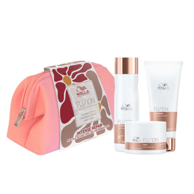 Wella Fusion Trio Set formulated for dry, brittle and damaged hair, designed to restore strength, softness, and manageability while reducing breaka...